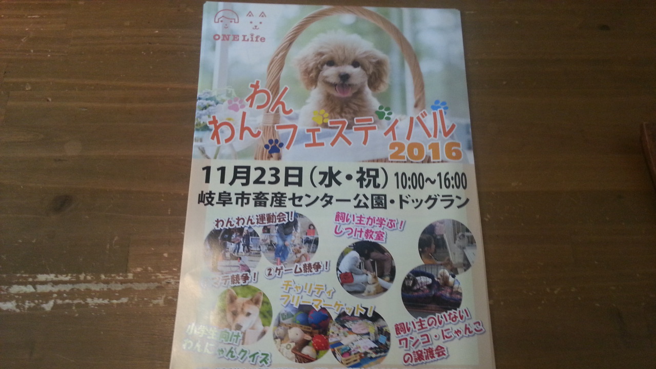 11月23日水曜日に「わんわんフェスティバル2016」が開催されます(^^♪
